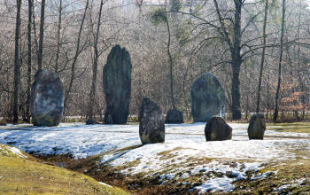 accueil un "cromlech", un cercle ovale long de 50m où sont disposés 45