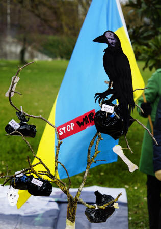 | Devant la mission russe le 28 avril 2022 |